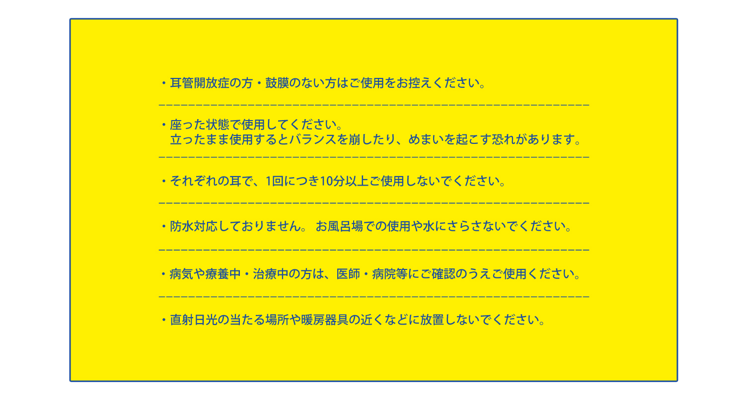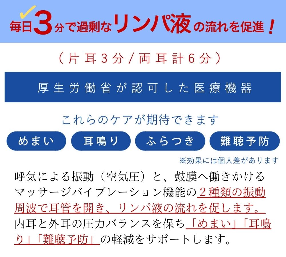 A 耳は両方の内耳にある蝸牛が身体のバランスを保ち、脳へ情報を伝達する重要な役割を担っています。そのため、調子の悪い片耳だけでなく、可能な限り両耳でのご使用をお勧めいたします。
